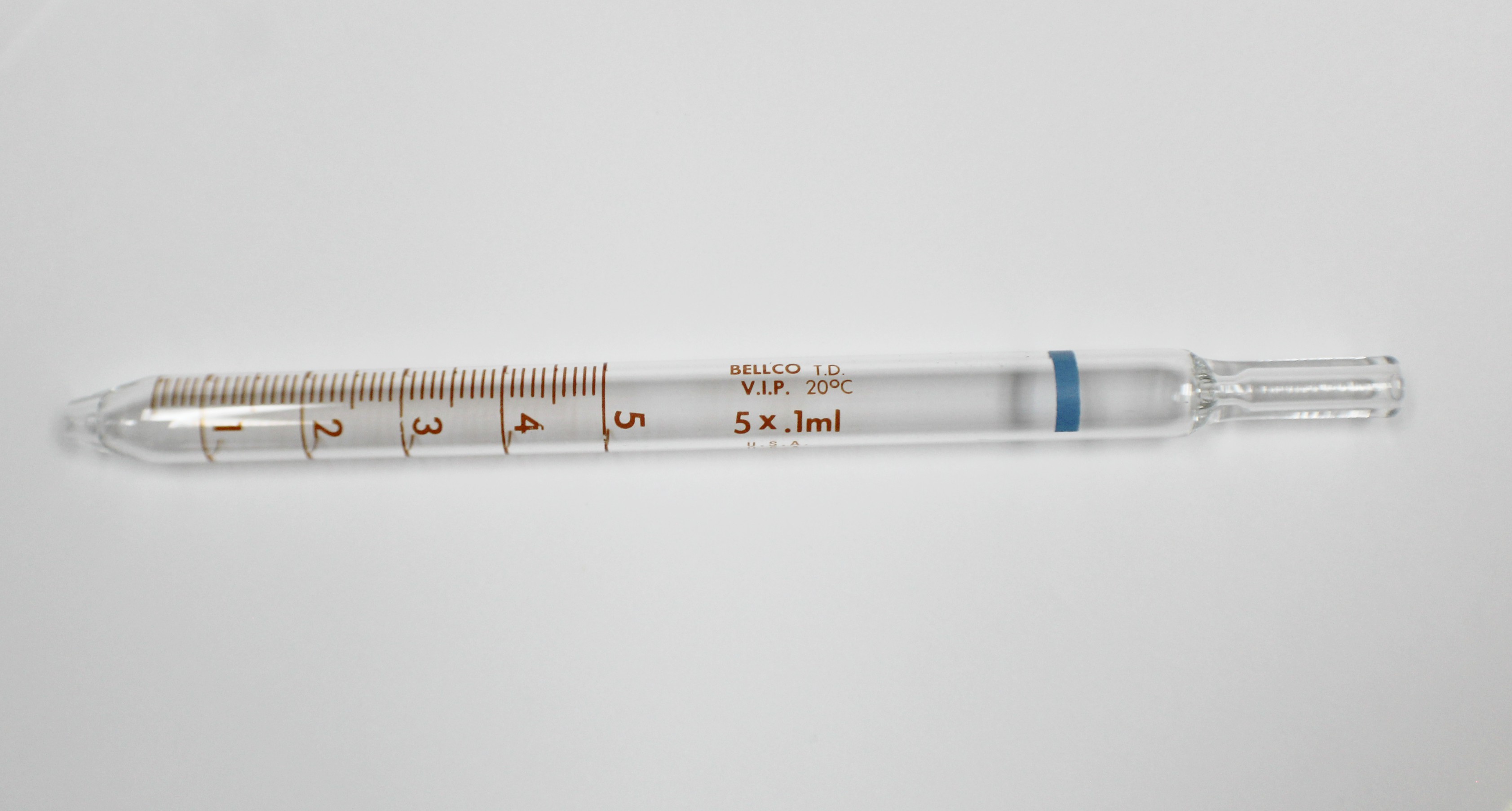 Bellco Glass, Inc - Large Orifice Shortie Pipet .5x.1mL Cotton Plug Top. (18/Case)