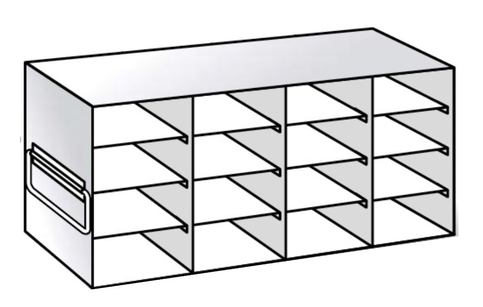 Custom BioGenic Systems Upright Freezer Rack, 16-Box Capacity (4 Long 4 High) for Standard 3" boxes, Stainless Steel, With Handles.