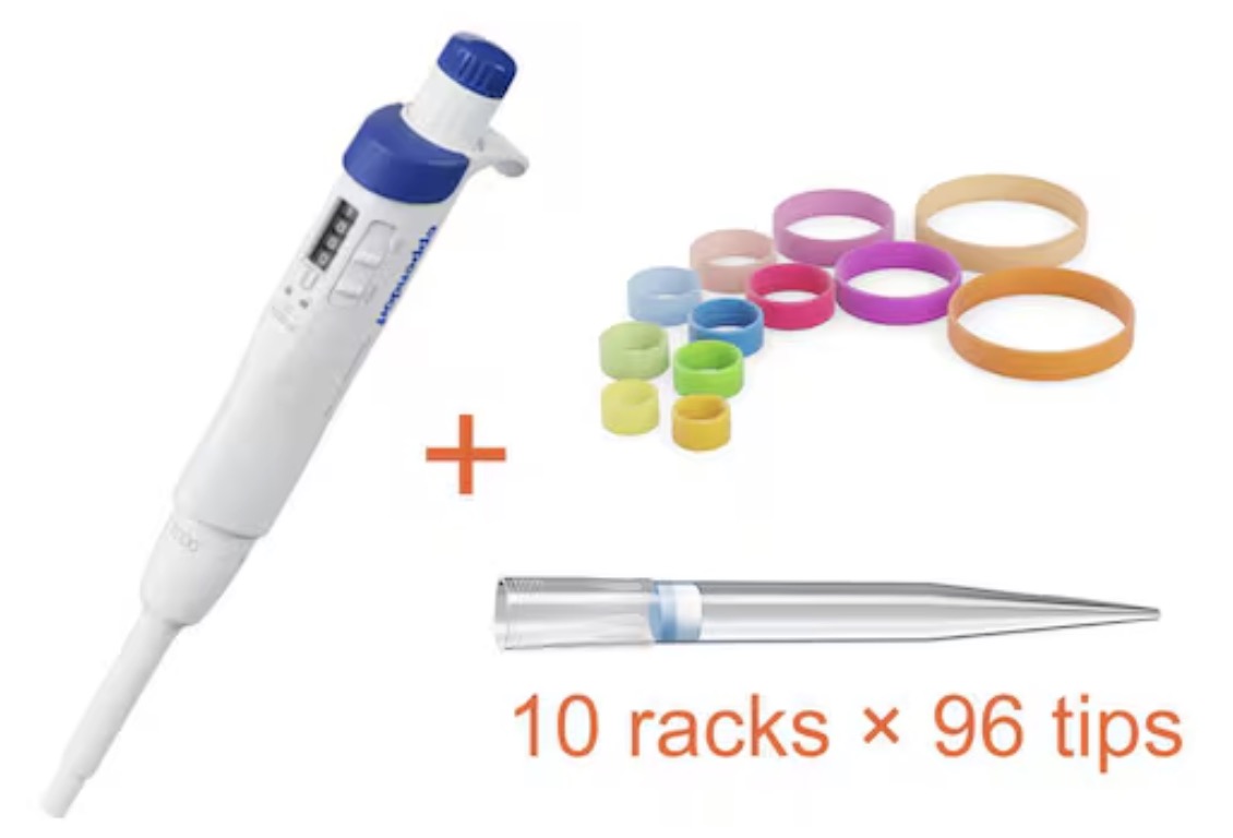 PROMO Eppendorf Research® 3 neo 1-channel; 50 – 1000 µL, blue, variable volume; ACT-labeled. Includes 960 ep Dualfilter T.I.P.S.®, 50 – 1000 µL, 76 mm, and ColorTag pipette marking rings sample bag