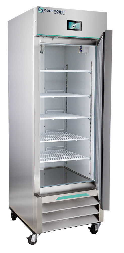 Corepoint Scientific White Diamond Series Laboratory and Medical Single Stainless Steel Solid Door Auto Defrost Freezer 23cu.ft
