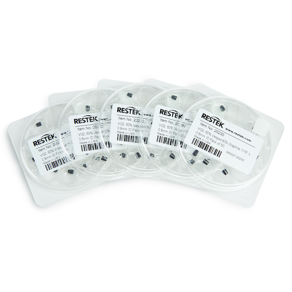 Restek capillary Vespel/Graphite ferrules; 0.8mm; fits columns 0.45/0.53mm; 50/pkg.