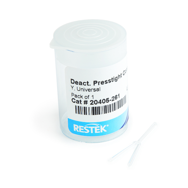 Restek Universal "Y" Press-Tight® connector; deactivated fused quartz; universal fit: use with 0.1-0.53 mm ID Restek® columns (0.33-0.74 mm OD); split sample flow to perform dual-column confirmation analysis with a single injection; split column flow to t