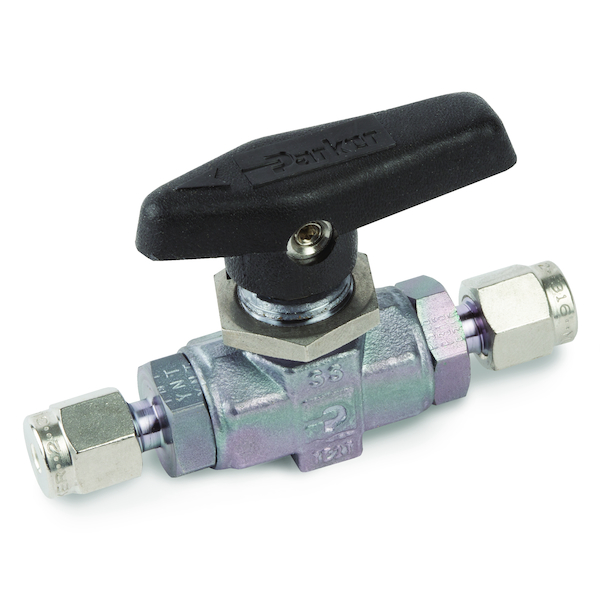 Restek Ball Valve, 2-Way, Straight, 1/8", Siltek/Sulfinert Treated.