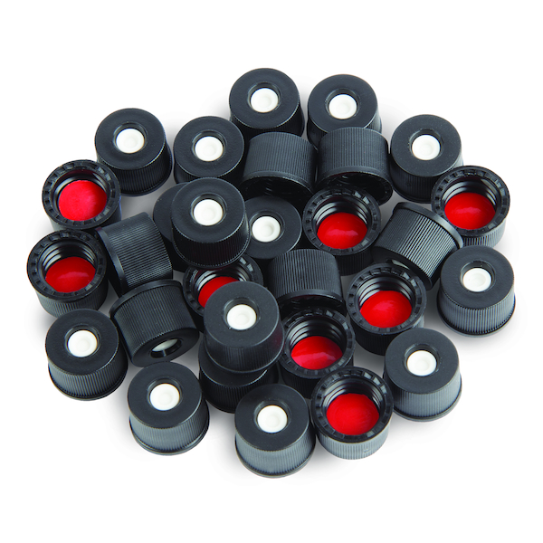 Vial Cap & Septa, 8-425 Black Top Hat PTFE Sil Septa Closure 1000PK