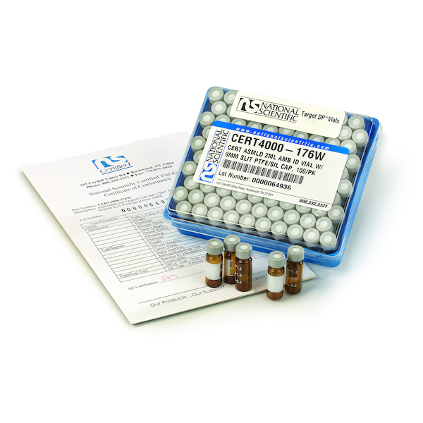 Certified Vials, Assembled 2mL Amber Vial w/Marking Spot and Bonded PTFE/Silicone Slit Septa, 100pk