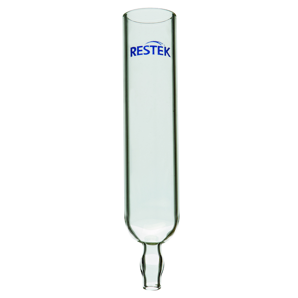Restek small PUF Glass Holder; durable and reusable; fit either 6 cm or 22 mm OD PUF plug or can be used with bulk SDVB resin; stem designed for secure 1/4" ID tubing connection to sampling pump; fits 22 mm OD PUF Plug (4.4" L x 0.9" OD); each.
