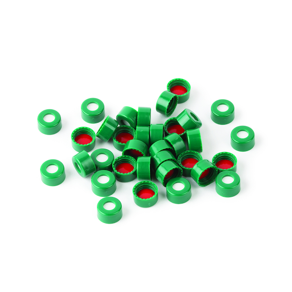 Caps, Short Screw, 9mm Green PTFE/Sil Pack of 100