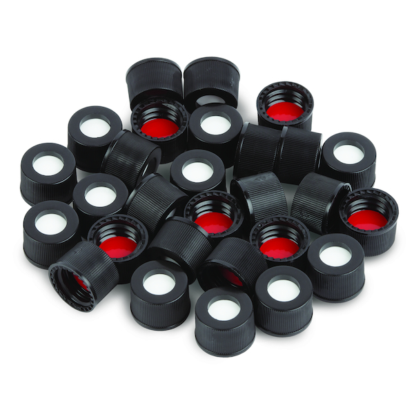 Vial Cap & Septa Kit, 10-425 Black Cap w/Red PTFE White Silicone Septa 1000PK