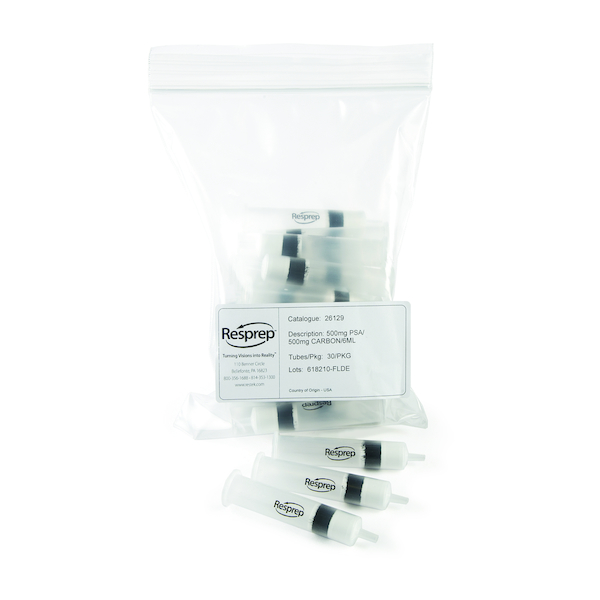 Combo SPE Tube, 6ml SPE Tube Packed w/500mg Graphitized Carbon and 500mg PSA PTFE Frits, 30pk