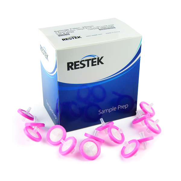 Restek Syringe Filter; 25mm; 0.22µm; nylon membrane; luer lock inlet; pink housing; pkg/100.