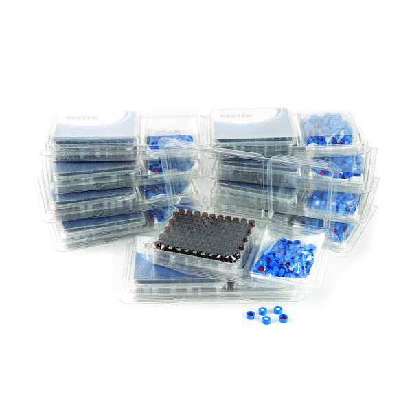 2ml Screw Thread Vial Kit, Amber w/Grad Marking Spot 9mm, Blue PTFE/Silicone Liner 1000-pk